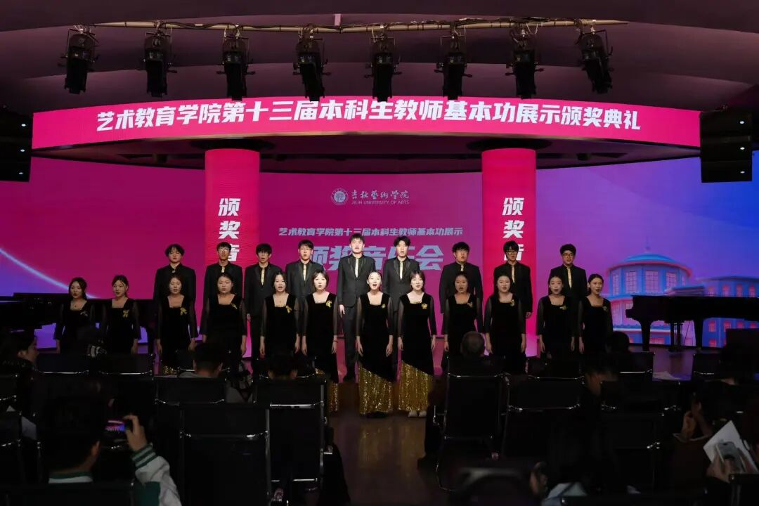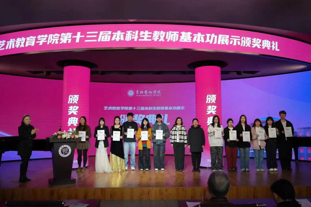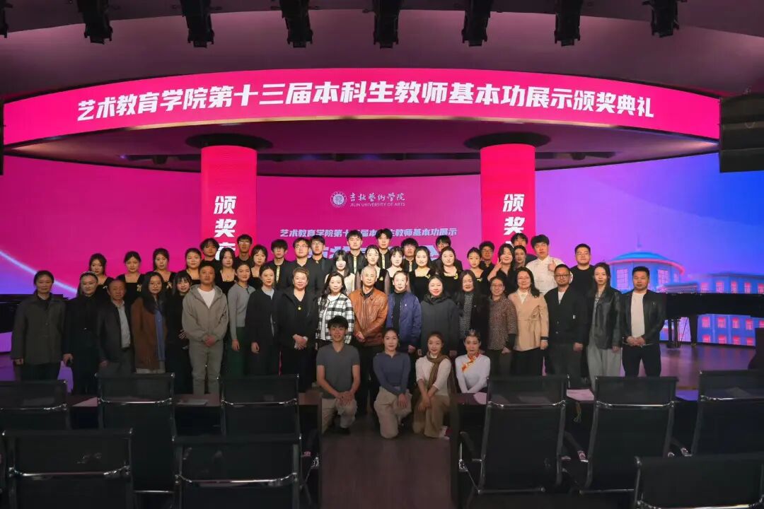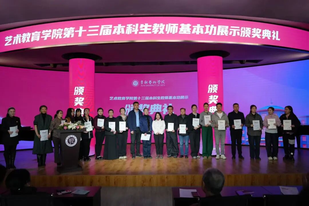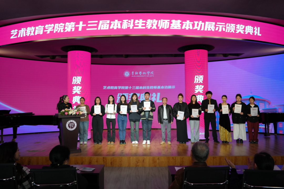 2025年4月25日,艺术教育学院第十三届本科生教师基本功展示颁奖典礼在四楼音乐厅隆重举行。本科生教师基本功展示活动是艺术教育学院教学工作的重要内容,体现教师教学成果和师范生人才培养质量,展示各专业的综合素质、专业水平和实践能力,彰显艺术教育学院教学团队的育人成效。教务处副处长赵坤、副处级调研员徐冰和艺术教育学院领导班子、三系三中心主任、教研室主任、教师代表、学生代表以及观摩师生汇聚一堂,共同见证了未来教育工作者的青春风采,颁奖典礼由艺术教育实践中心主任张帆主持。