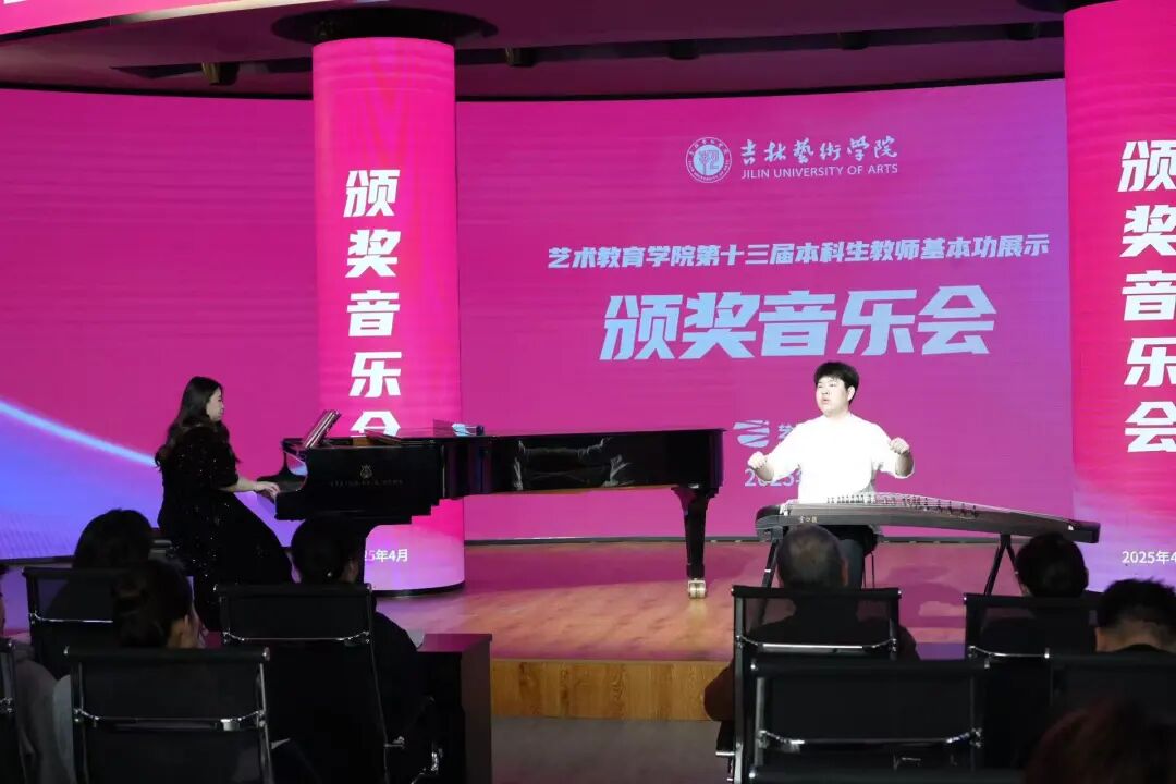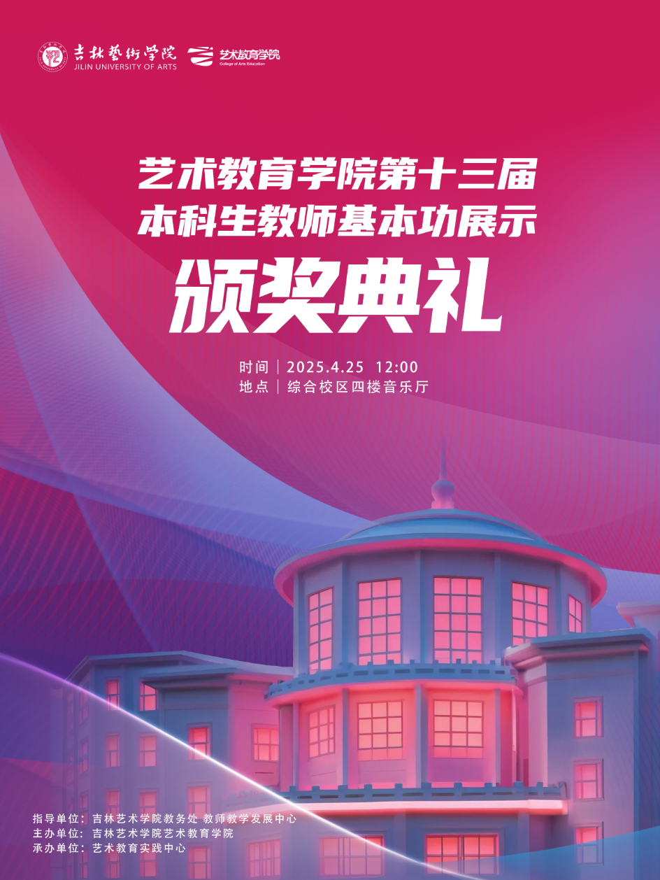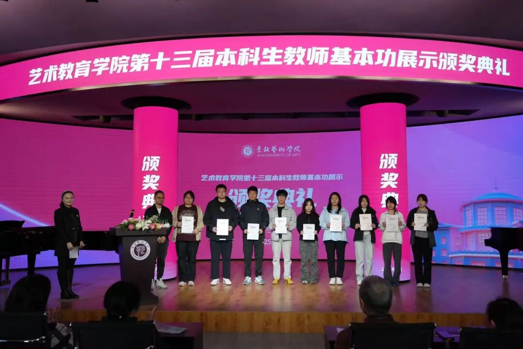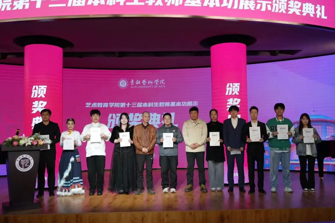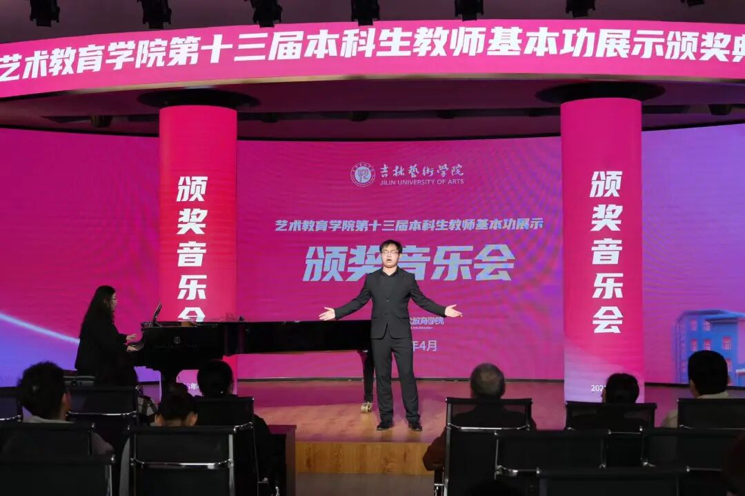 2025年4月25日,艺术教育学院第十三届本科生教师基本功展示颁奖典礼在四楼音乐厅隆重举行。本科生教师基本功展示活动是艺术教育学院教学工作的重要内容,体现教师教学成果和师范生人才培养质量,展示各专业的综合素质、专业水平和实践能力,彰显艺术教育学院教学团队的育人成效。教务处副处长赵坤、副处级调研员徐冰和艺术教育学院领导班子、三系三中心主任、教研室主任、教师代表、学生代表以及观摩师生汇聚一堂,共同见证了未来教育工作者的青春风采,颁奖典礼由艺术教育实践中心主任张帆主持。