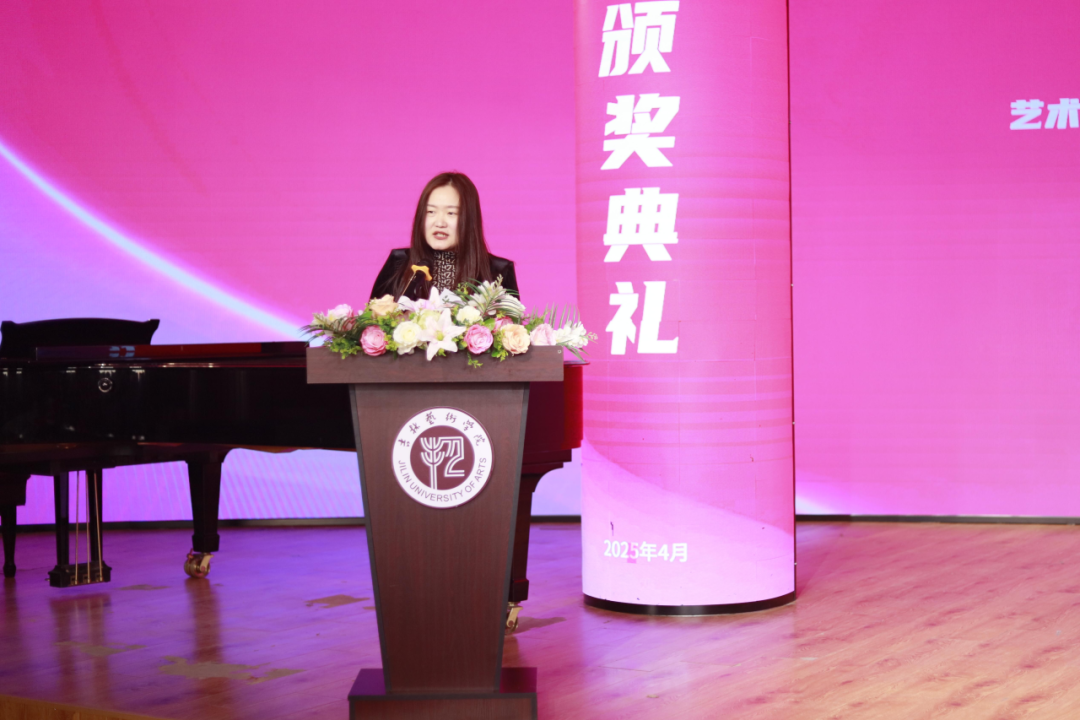 艺术教育学院教学副院长涂蓓在颁奖典礼上讲话